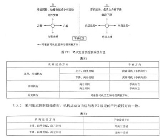 7.3 对于手柄控制或轮式控制器,一般选择右手控制起升和行走机构,左手控制回转和小车变幅或动臂变幅机构。